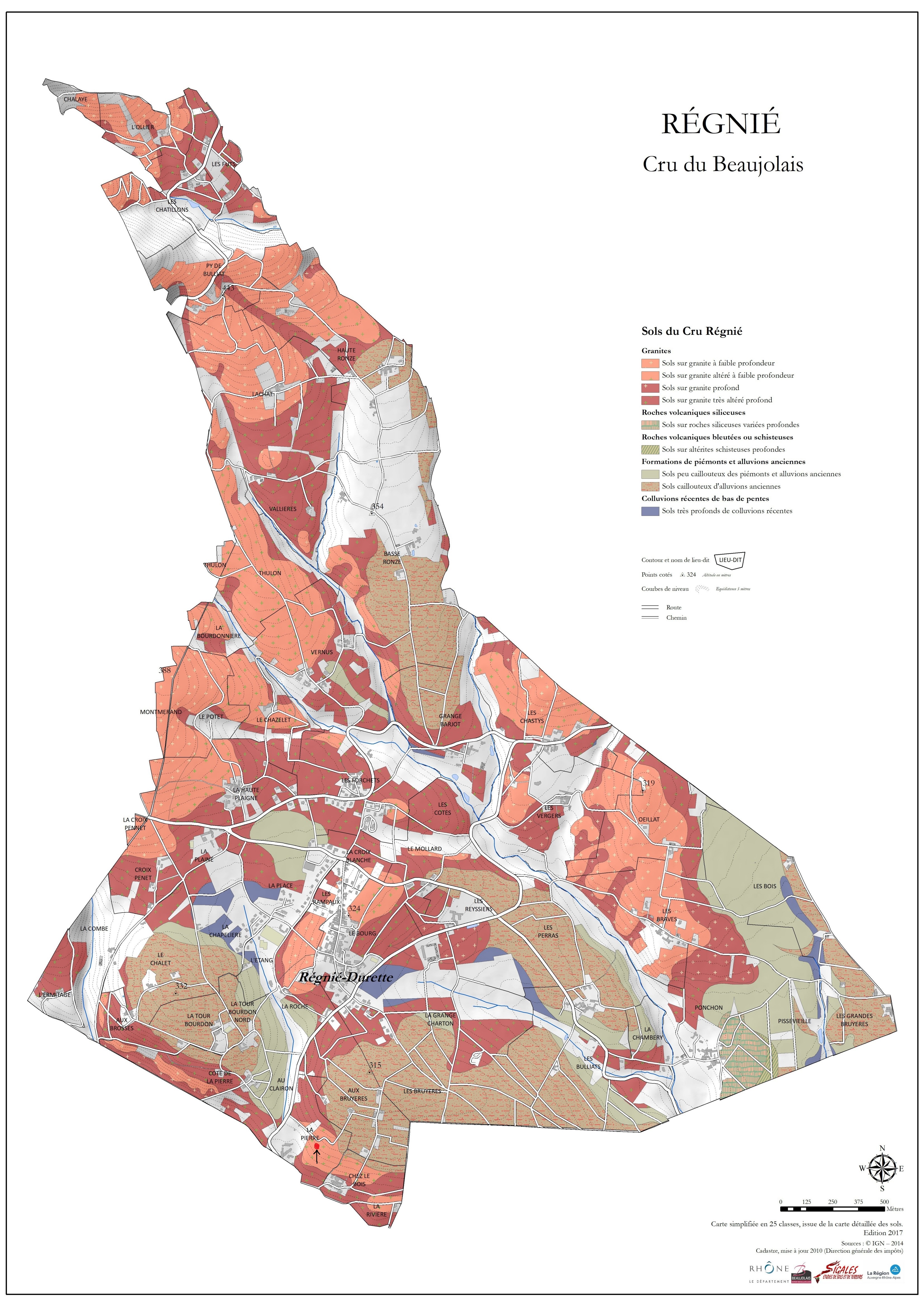 Název parcely La Pierre (Kámen) je příznačný, neboť parcela leží na granitovém podloží (růžové žuly) s množstvím aluviálních sediementů, pocházejících z čtvrtohor. Vinice La Pierre těsně přiléhá k parcele Aux Bruyères, najdeme ji jižně od obce Regnié v nadmořské výšce 300 metrů. Ručně sklízené hrozny jsou fermentovány v celku polokarbonickou maceraci po dobu dvou týdnů. Následně víno vyzzrávalo 12 měsíců ve starších dubových sudech.